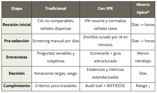 ¿Coordinamos una demo para aplicar la SPK en tu próxima vacante esta semana?