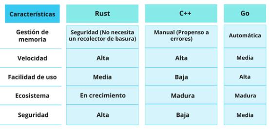 Comparativa de características de Rust con otros lenguajes de alto rendimiento
