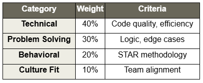 Structured Interview Framework: A standardized approach to evaluating candidates using consistent criteria and scoring systems.