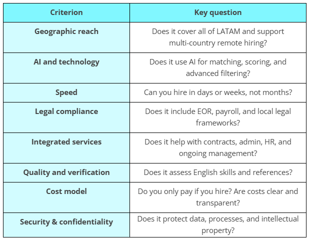 Choosing platforms and partners that score high on these criteria will directly impact your ability to scale a profitable, compliant, and high-performing LATAM sales team.