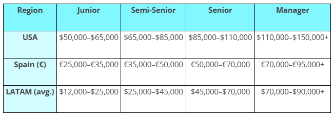 Notes: Ranges vary by country, market conditions, specialization, and benefits. Use the Interfell Smart Hiring Salary Guide 2025 for precise, country-level ranges.