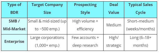 Types of BDR by Account Size: SMB/Mid-Market vs Enterprise