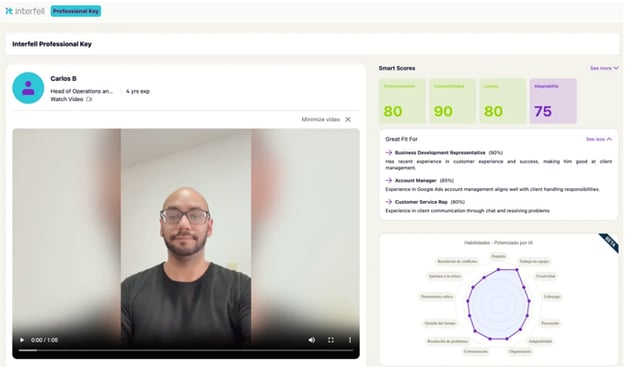 La IPK es el nuevo estándar de Interfell para presentar talento, de forma rápida, profunda y comparable. Al integrar resumen ejecutivo + insights IA, se reduce el tiempo de decisión, mejora la calidad de las contrataciones y se alinea el proceso con los resultados del negocio.