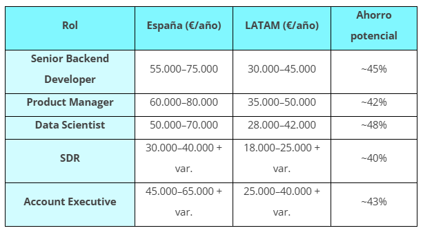 1) ¿Cuánto puedo ahorrar contratando talento tech remoto en LATAM desde España?